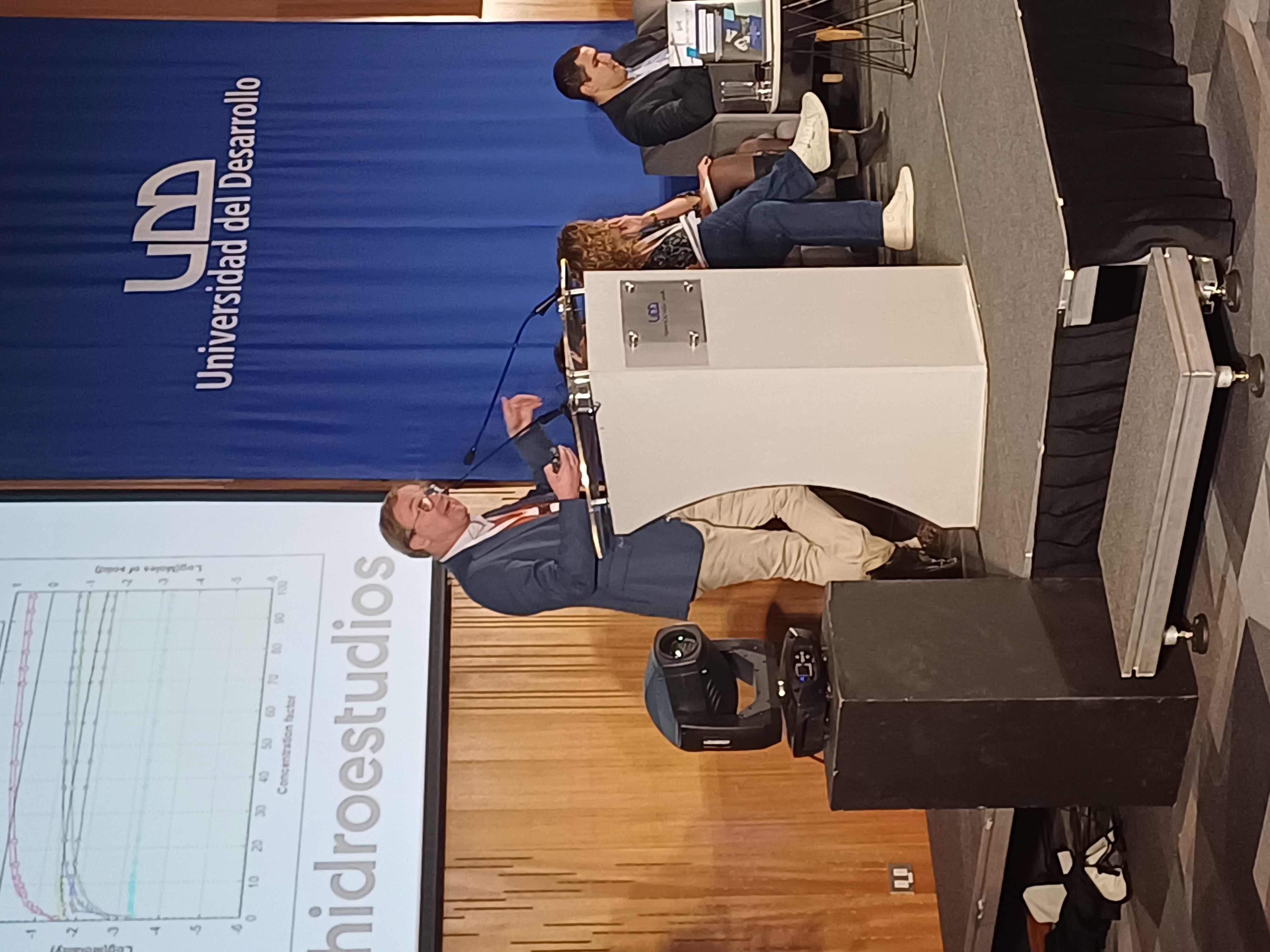 Jacques Wiertz y Cristián Ortiz, gerente general de Hidroestudios, presentaron el tema “Doce años de reinyección en el acuífero del Salar de Llamara: lecciones para los proyectos futuros”, donde analizaron los desafíos de la reinyección de salmuera en los futuros proyectos de litio.