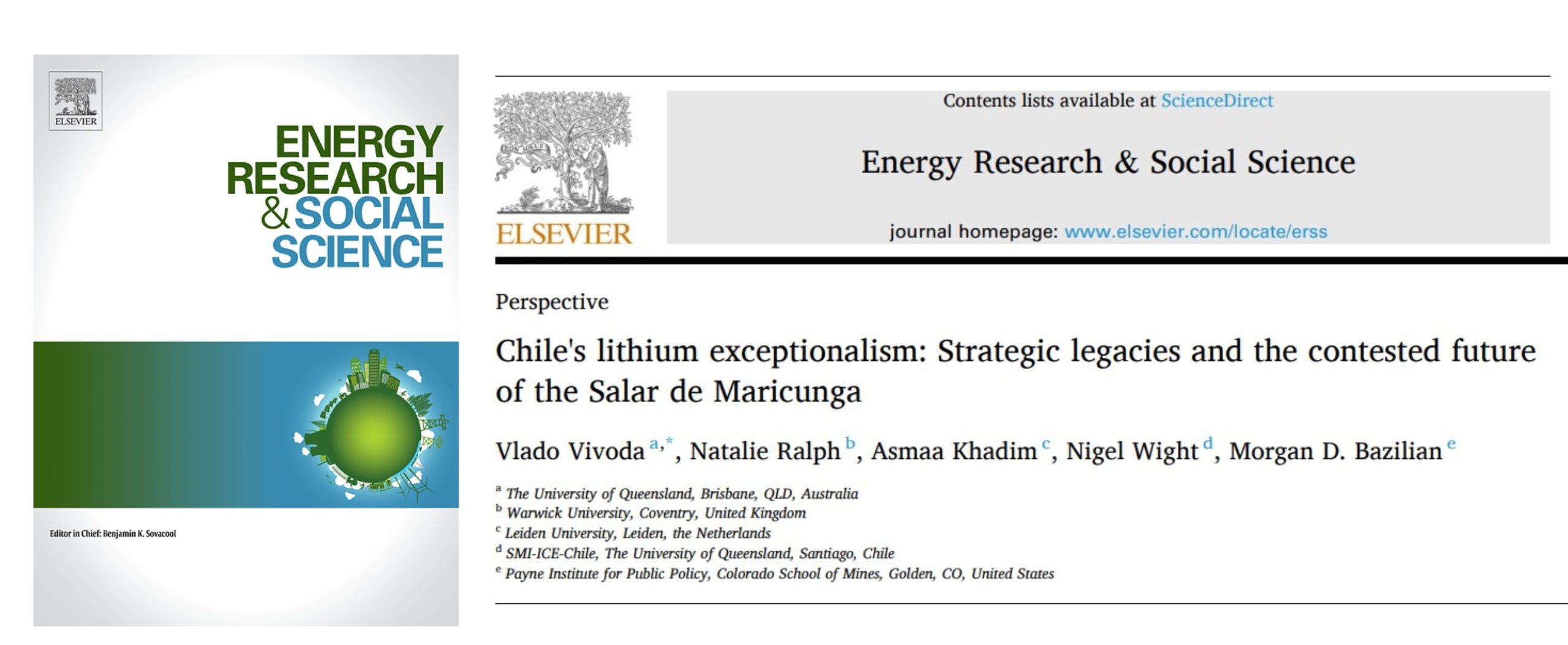 La publicación, titulada “Chile’s lithium exceptionalism: Strategic legacies and the contested future of the Salar de Maricunga”, tiene por autores al Dr. Nigel Wight, de SMI-ICE-Chile; al Dr. Vlado Vivoda, de The University of Queensland; a la investigadora Nathalie Ralph, de Warwick University (UK); a la Dra. Asmaa Khadim, de Leiden University; y a Morgan Bazilian, director del Payne Institute y profesor de Políticas Públicas en Colorado School of Mines (USA).