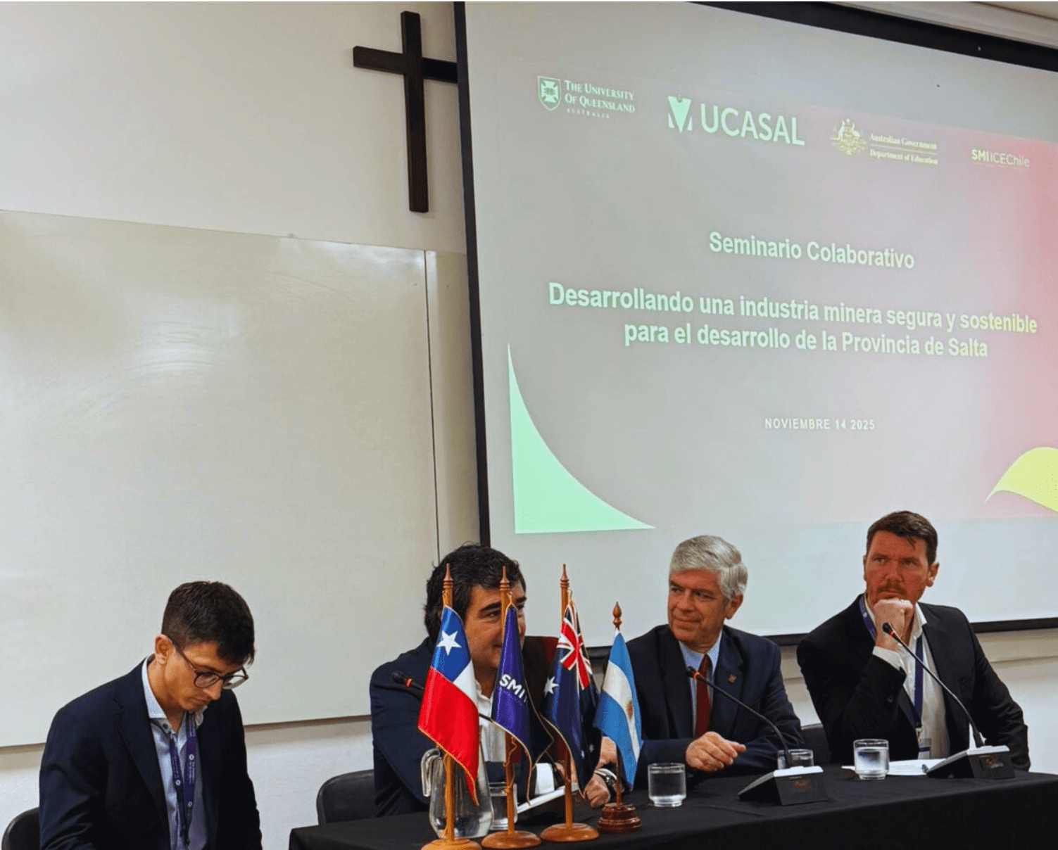 Por parte de SMI-ICE-Chile, la actividad estuvo liderada por Doug Aitken, director ejecutivo, y Francisca Rivero, gerenta general; en representación de UCASAL, se hizo presente su rector Rodolfo Gallo Cornejo, su vicerrector, Alejandro Patrón Costas y Viviana Santinón, asesora de Emprendimiento e Innovación. Este seminario contó también con la participación de autoridades locales, como Martín de los Ríos, ministro de producción y desarrollo sustentable de Salta y Leonardo Matías Gualpa, director de Asuntos Legales y Técnicos de la Secretaria de Mineria y Energia de Salta. Por parte de The University of Queensland, se hicieron presentes Eliana Burbano y Alan Wood, de UQ International Development.